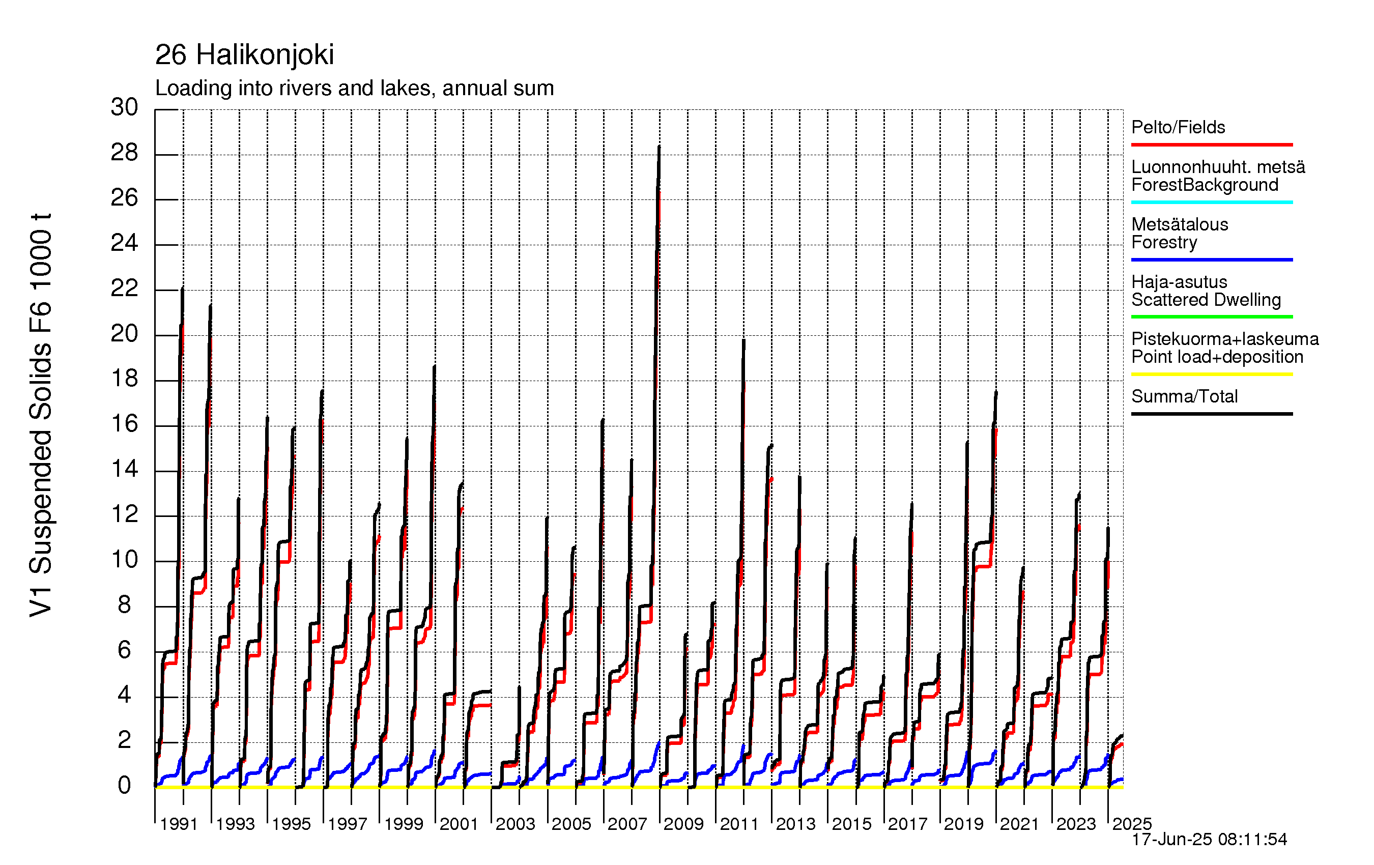 WSFS-Vemala: Kokonaiskiintoainekuormitus: Halikonjoen vesistöalue - summa