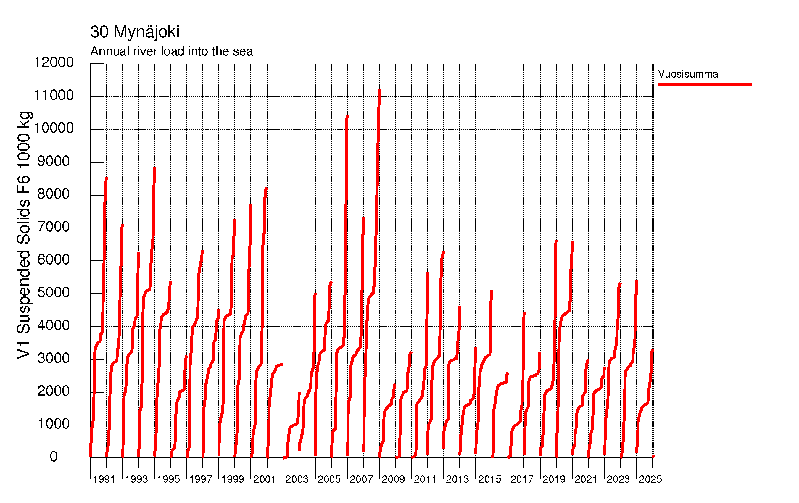 WSFS-Vemala: Kokonaiskiintoainekuormitus: Mynäjoen vesistöalue - summa