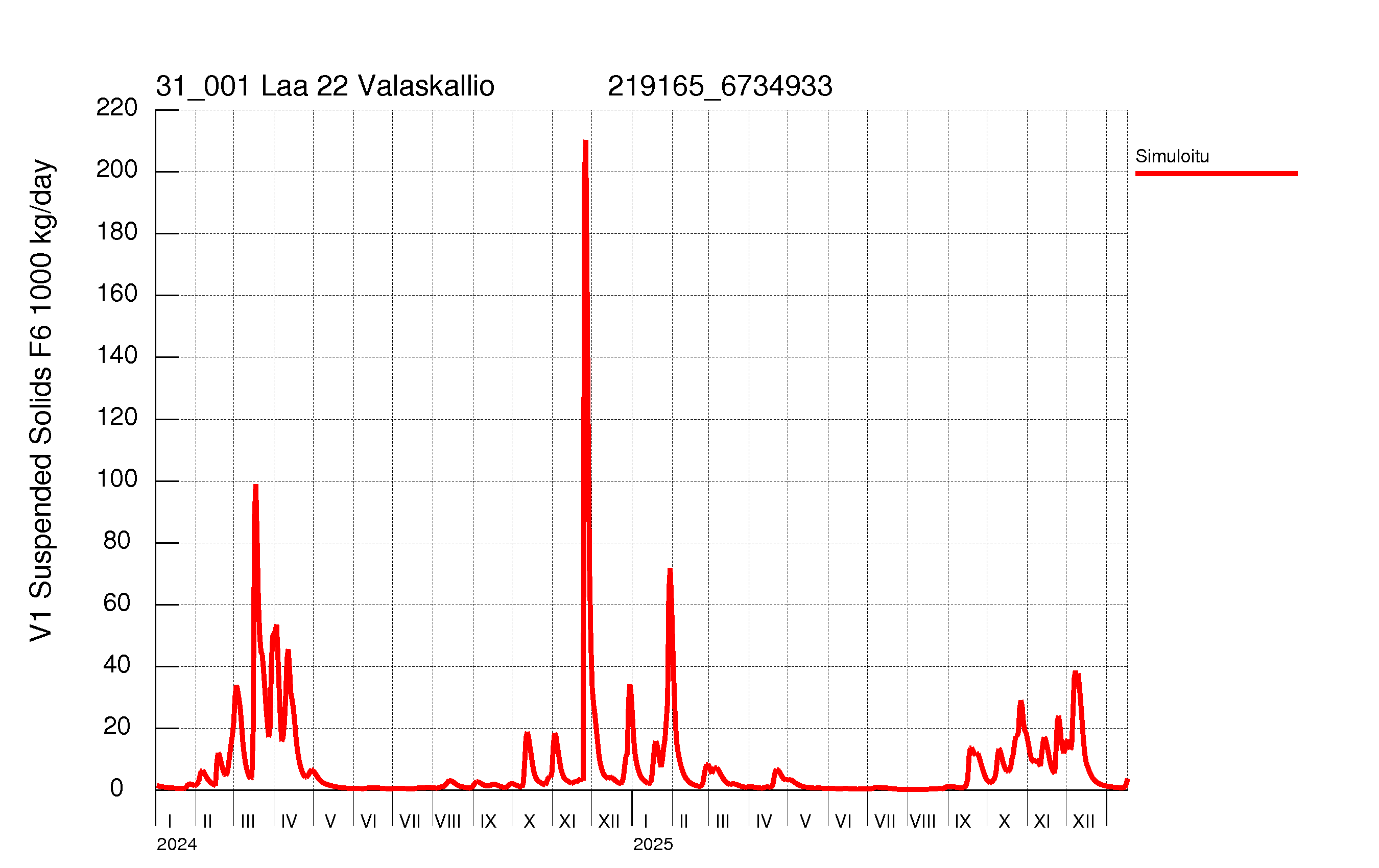 Kiintoainekuorma![]() Kiintoaine summakuorma![]() ![]() Kiintoainepitoisuus![]() Virtaama![]() |