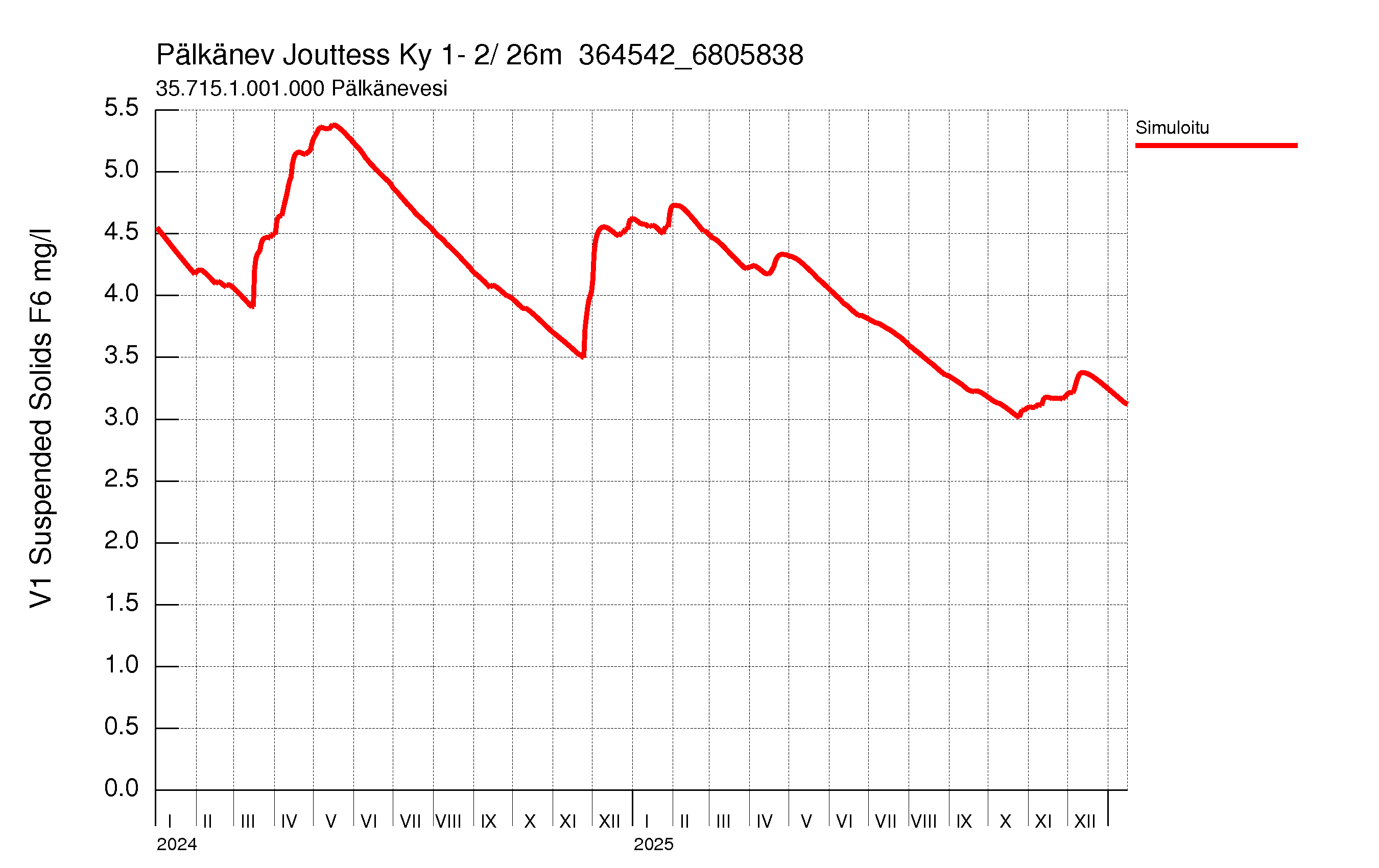 Kiintoainepitoisuus![]() Kiintoainekuormitus![]() Kiintoaine summakuorma![]() ![]() Kiintoaine sedimentaatio![]() |