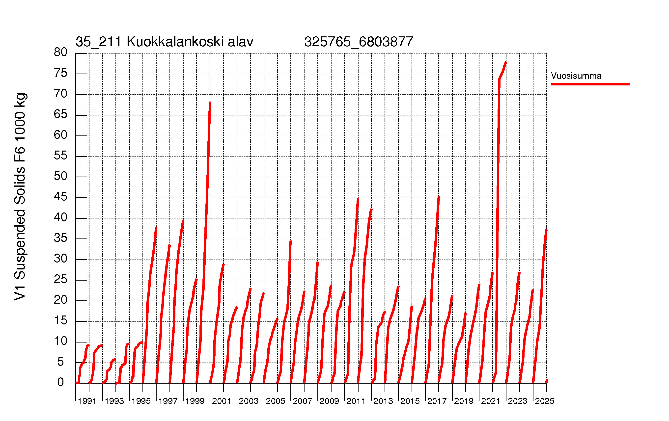 Kiintoainekuorma![]() Kiintoaine summakuorma![]() ![]() Kiintoainepitoisuus![]() Virtaama![]() |