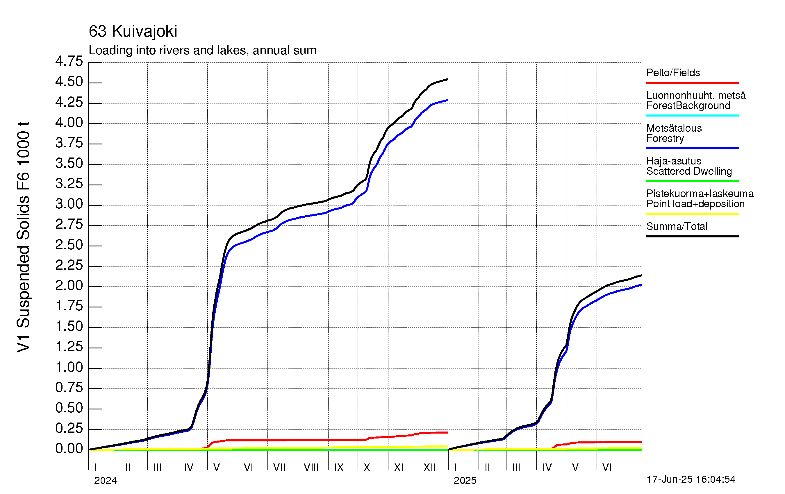WSFS-Vemala: Kokonaiskiintoainekuormitus: Kuivajoen vesistöalue - summa