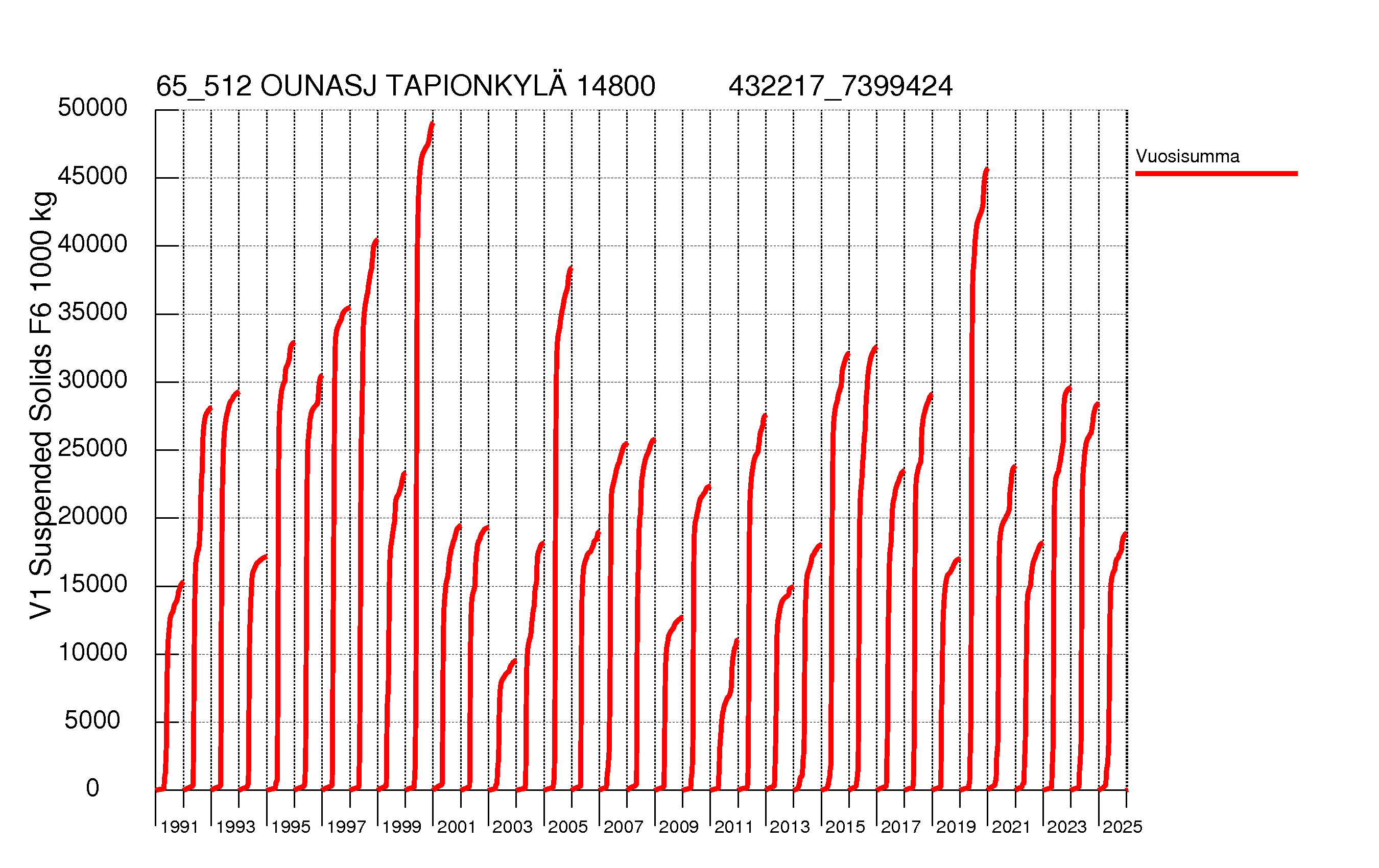 Kiintoainekuorma![]() Kiintoaine summakuorma![]() ![]() Kiintoainepitoisuus![]() Virtaama![]() |