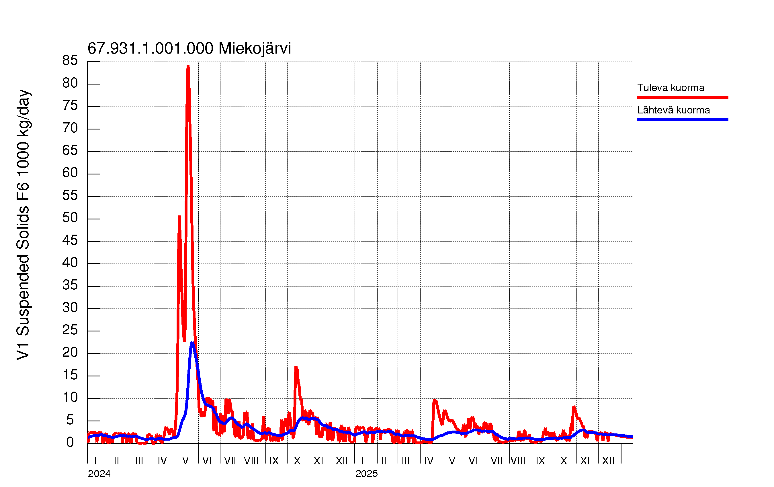 WSFS-Vemala: Kokonaiskiintoainekuormitus: Tornionjoen vesistöalue - MiekojärviAsiantuntijan työpöytä > Ravinnekuormitus > Perämeri > Tornionjoen vesistöalue > MiekojärviFOSFORI | TYPPI | KIINTOAINE