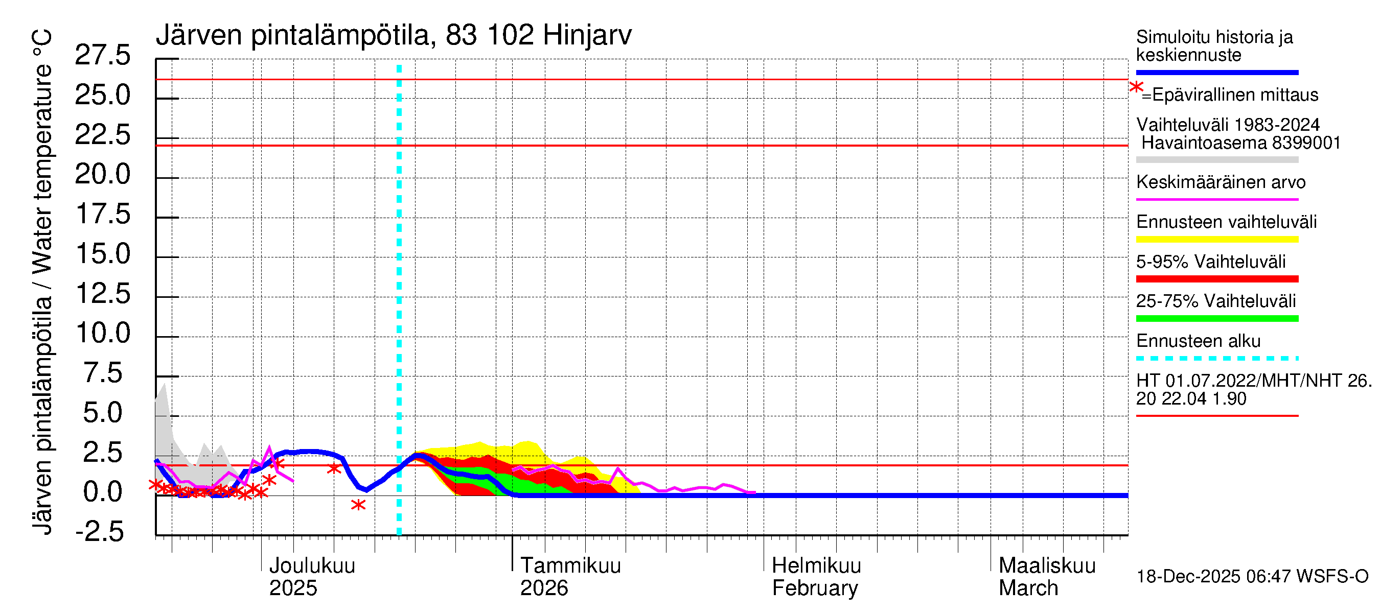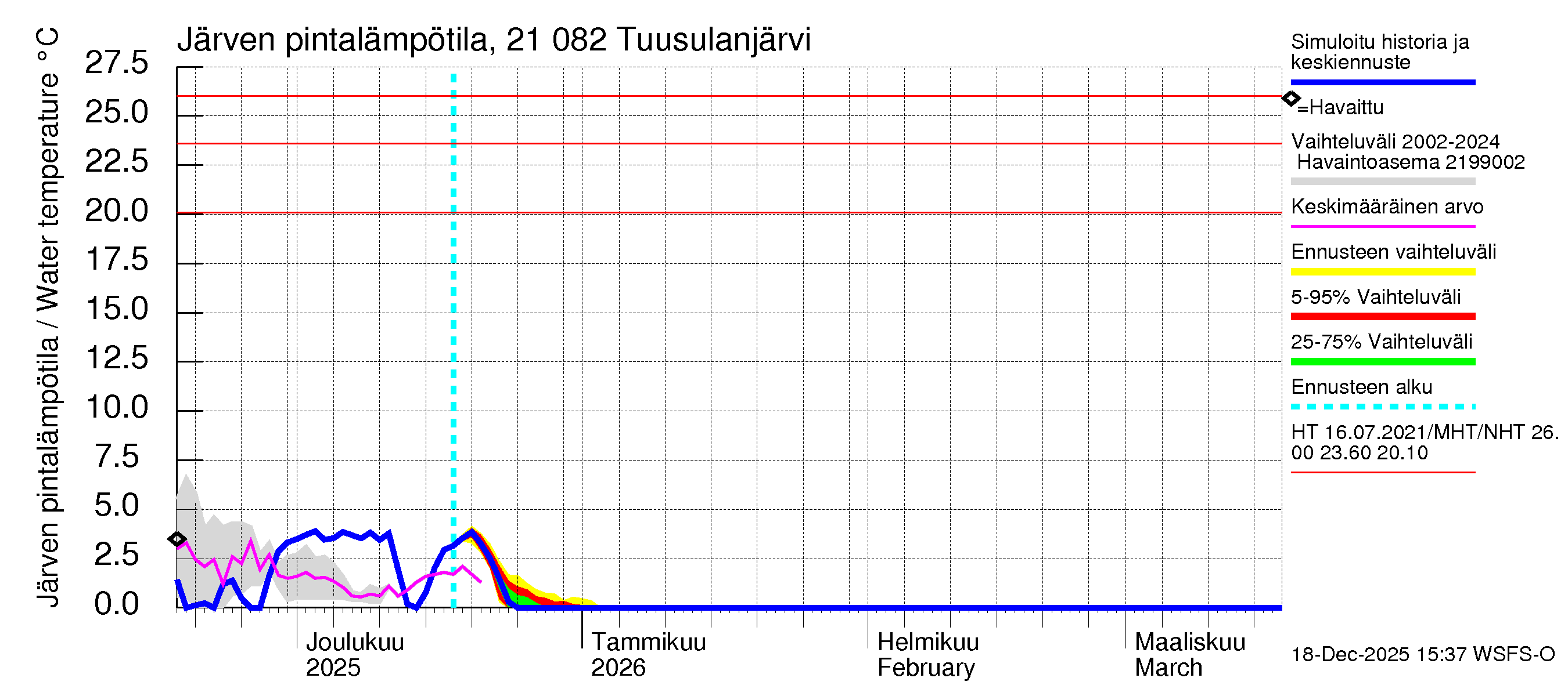 Vesistöennusteet: Järven pintalämpötilahavaintojen kooste