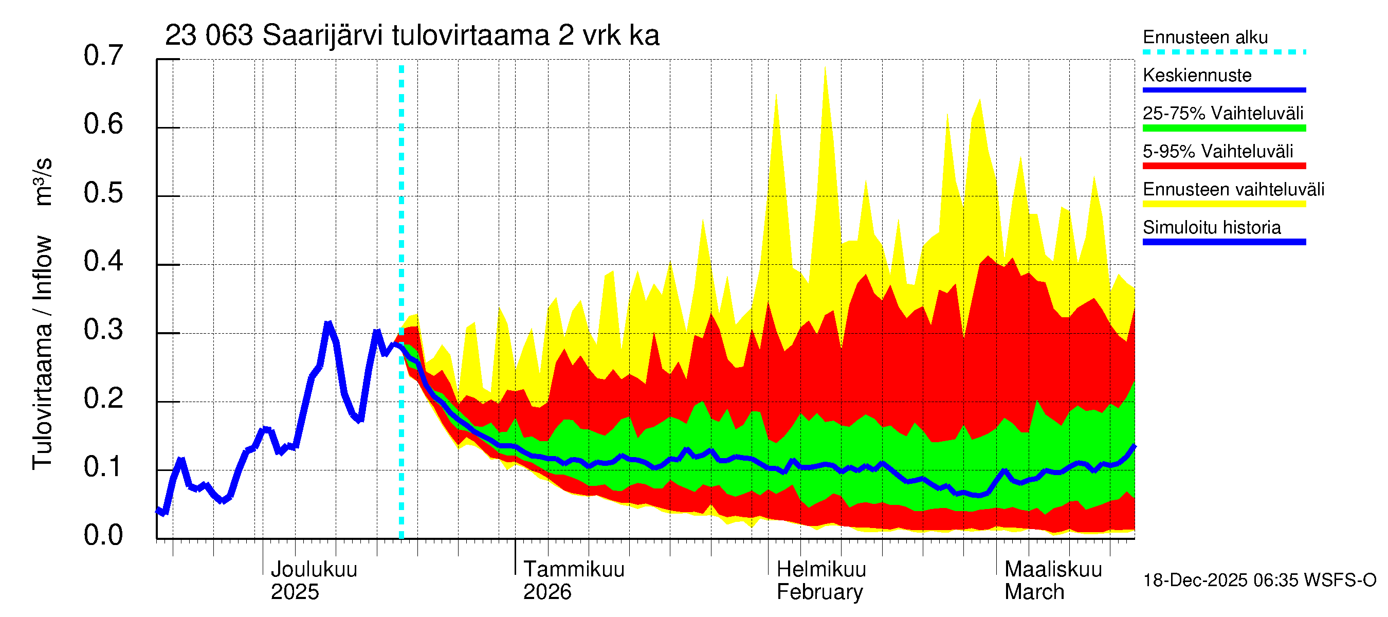 Karjaanjoen vesistöalue - Saarijärvi: Tulovirtaama (usean vuorokauden liukuva keskiarvo) - jakaumaennuste