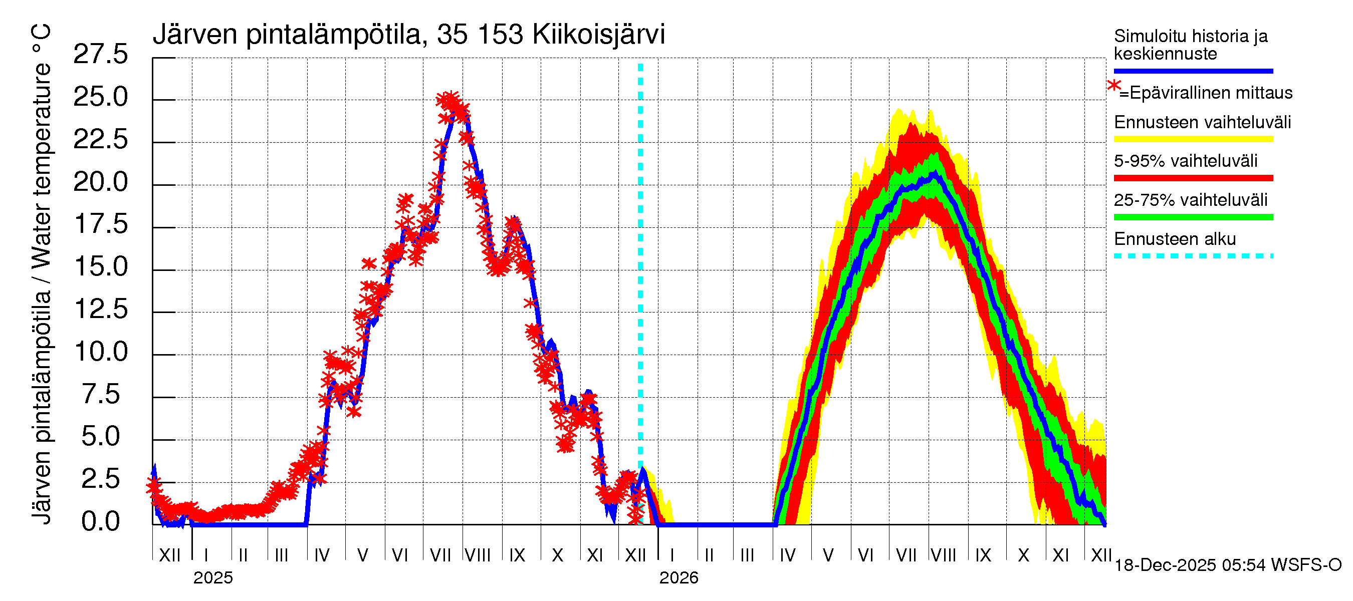 Kokemäenjoen vesistöalue - Kiikoisjärvi: Järven pintalämpötila